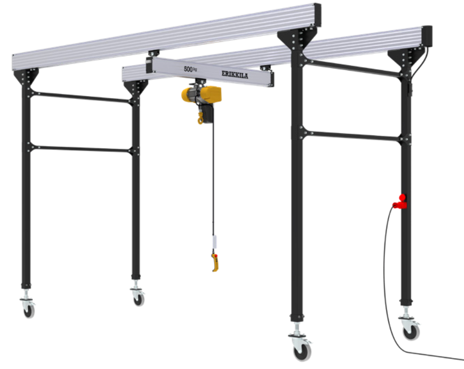 Kompakti ja helposti liikuteltava malli yksittäisiin työpisteisiin ja vaihtuvaan tuotantoon. Ei vaadi ankkurointia tai rakenteiden muutoksia, koska raskaan käytön mahdollistavat pyörät tekevät siirtämisestä ja paikoilleen lukitsemisesta helppoa. Soveltuu hyvin kokoonpanotöihin, pakkaamoon ja huoltoon.